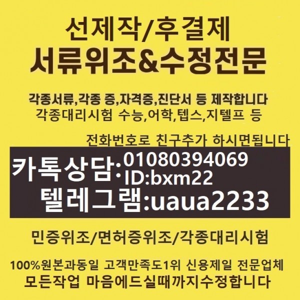 자체입찰공고 [제작위조]문서위조#미성년자쯩#어학대리시험→톡ID:bxm22&톡친추01080394069탤래uaua2233민증위조#콘서트티켓위조…